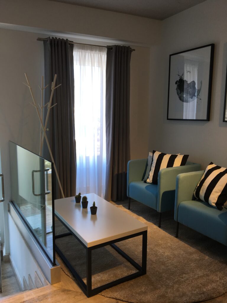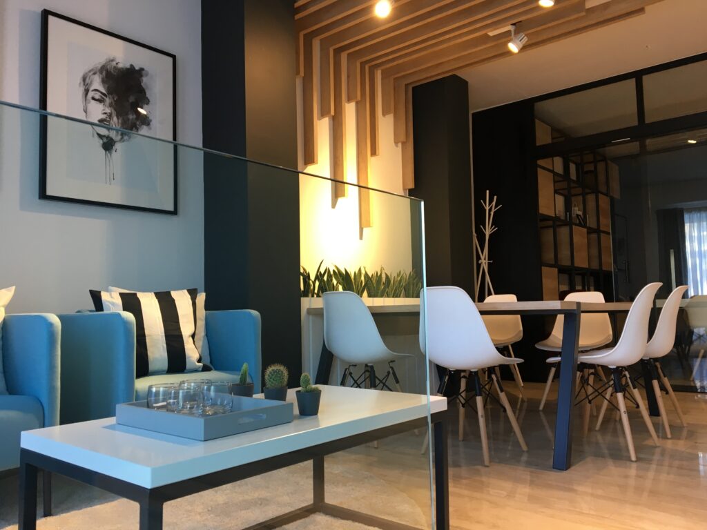 Through skillful tailoring, we created three distinct rooms, which effortlessly flow into one another. A quaint, compact yet fresh and youthful layout which made wise use of space.