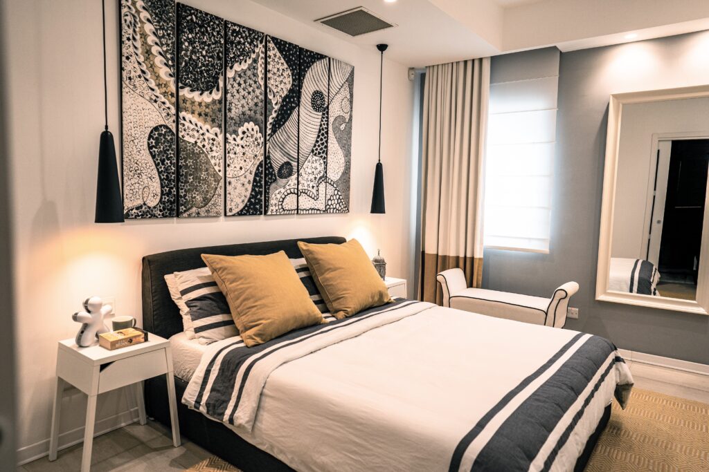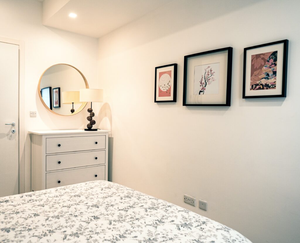The main bedroom’s ensuite was knocked down due to its awkward angling and was made to extend into the bedroom so as to include a walk-in shower.